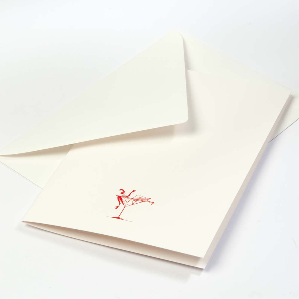Die Kombination aus minimalistischer Linienführung und kräftigem Rot verleiht der Karte eine exklusive, fast glamouröse Note. Sie wirkt wie eine Mini-Illustration aus der Haute Couture – ideal für alle, die Ausdrucksstärke und Eleganz lieben.