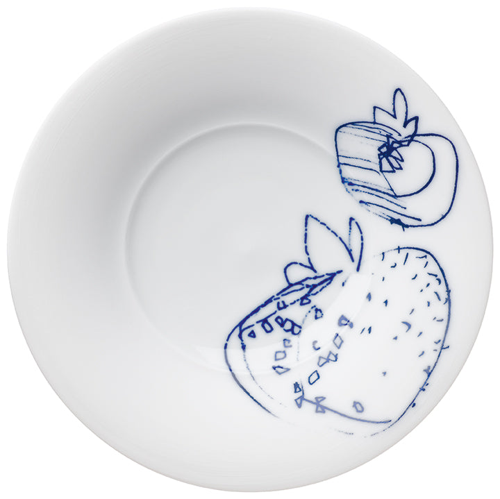 Schale aus Bisquitporzellan, fein geschliffen und mit Kobaltzeichnung, spülmaschinenfest und mikrowellengeeignet. Die Schale hat einen Durchmesser von 16cm und eine Höhe von 4cm, Fassungsvermögen 50ml, geeignet für Obst, Gebäck und Dessert.