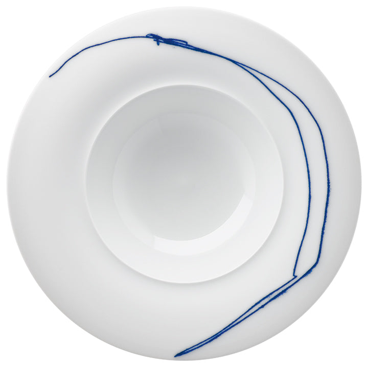 Teller aus Bisquitporzellan, fein geschliffen und mit Kobaltzeichnung, spülmaschinenfest und mikrowellengeeignet. Der Teller hat einen Durchmesser von 25cm und eine Höhe von 6cm, Fassungsvermögen 250ml, geeignet für Suppe, Zwischengang, Hauptgang und Dessert.