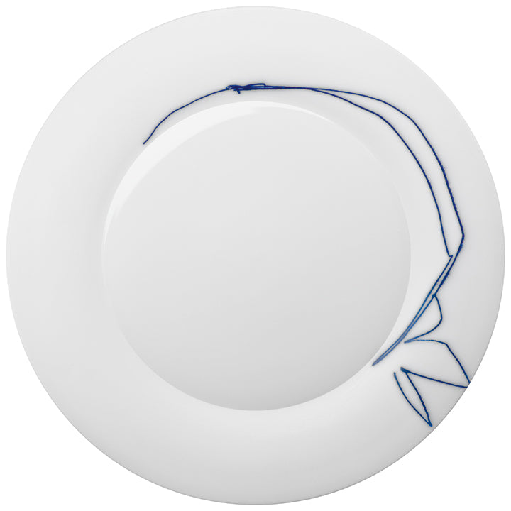 Teller aus Bisquitporzellan, fein geschliffen und mit Kobaltzeichnung, spülmaschinenfest und mikrowellengeeignet. Der Teller hat einen Durchmesser von 37cm und eine Höhe von 2,5cm, geeignet als Platzteller oder Tortenplatte.