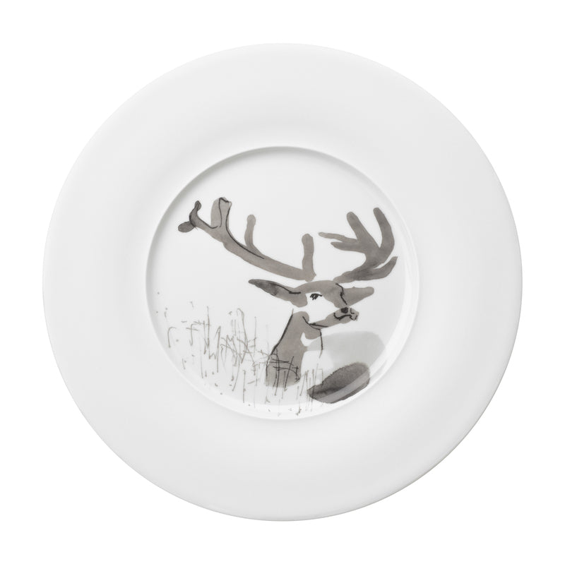Hering Berlin Piqueur Teller für Hauptgang mit breitem Rand - Dekor Hirsch