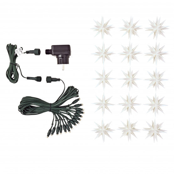 Herrnhuter Miniatur Sternenkette, 15 Sterne, 8cm, weiß