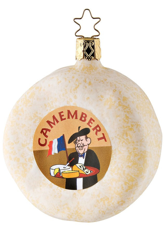 Der handgefertigte Camembert der Inge Glas-Manufaktur, mit Etikett.