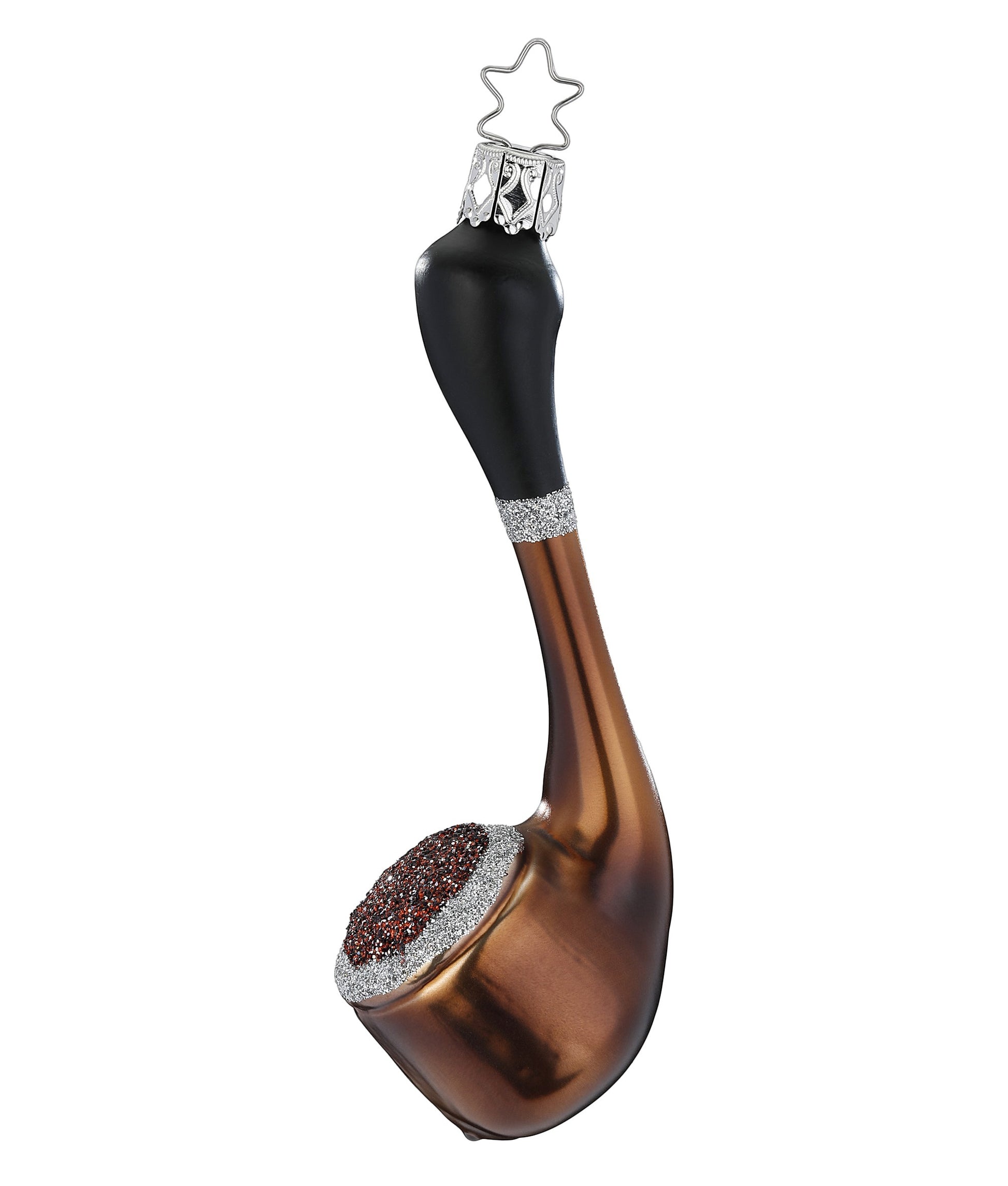 Die Pfeife der Inge Glas-Manufaktur in schimmernden Braunton, wurde mit glitzernden Details verziert.