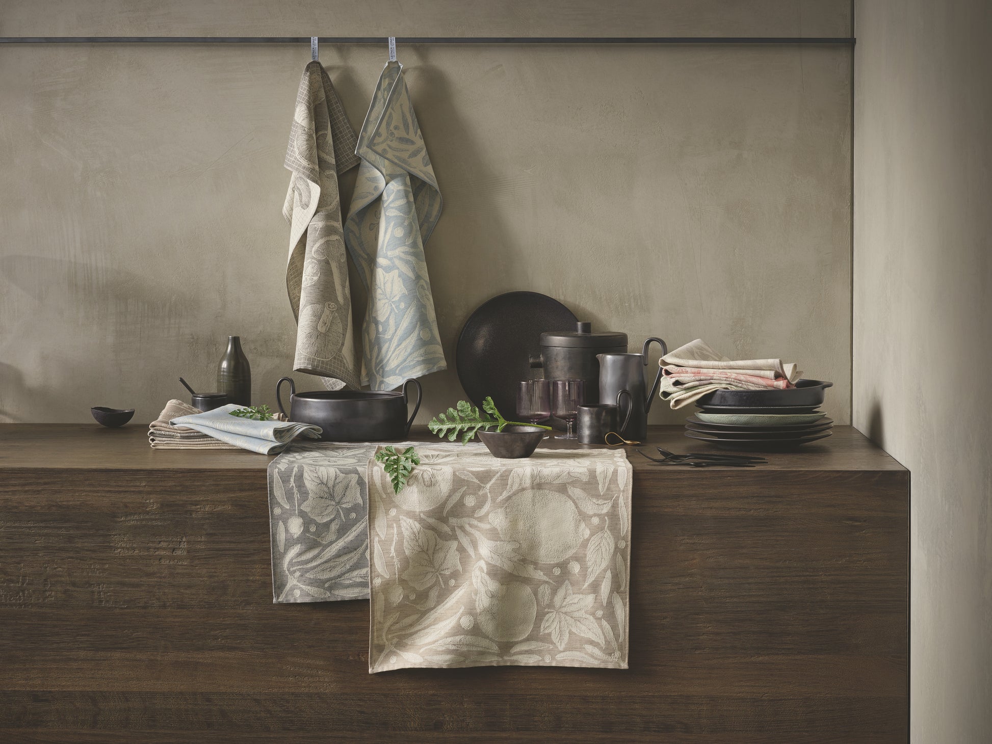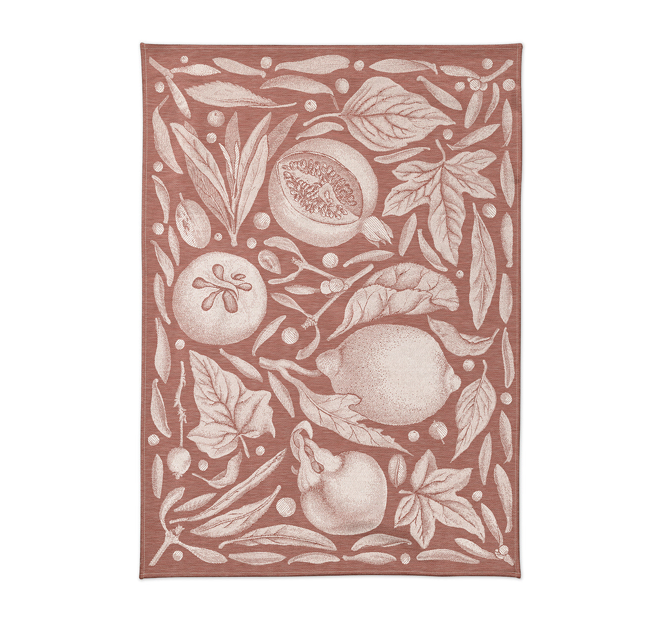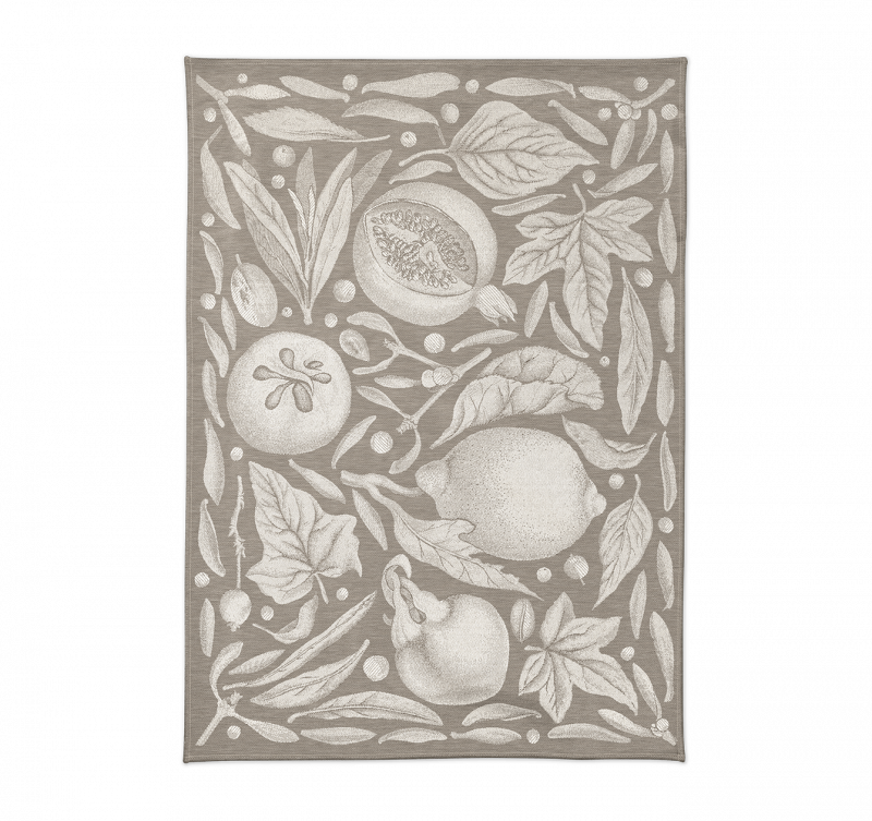 Der Granatapfel als wärmespendender Bote in der kalten Jahreszeit: das neue Küchentuch von Leitner Leinen aus Halbleinen weckt in der kalten Jahreszeit nochmal die Erinnerungen an Sommer, Sonne und Meer.