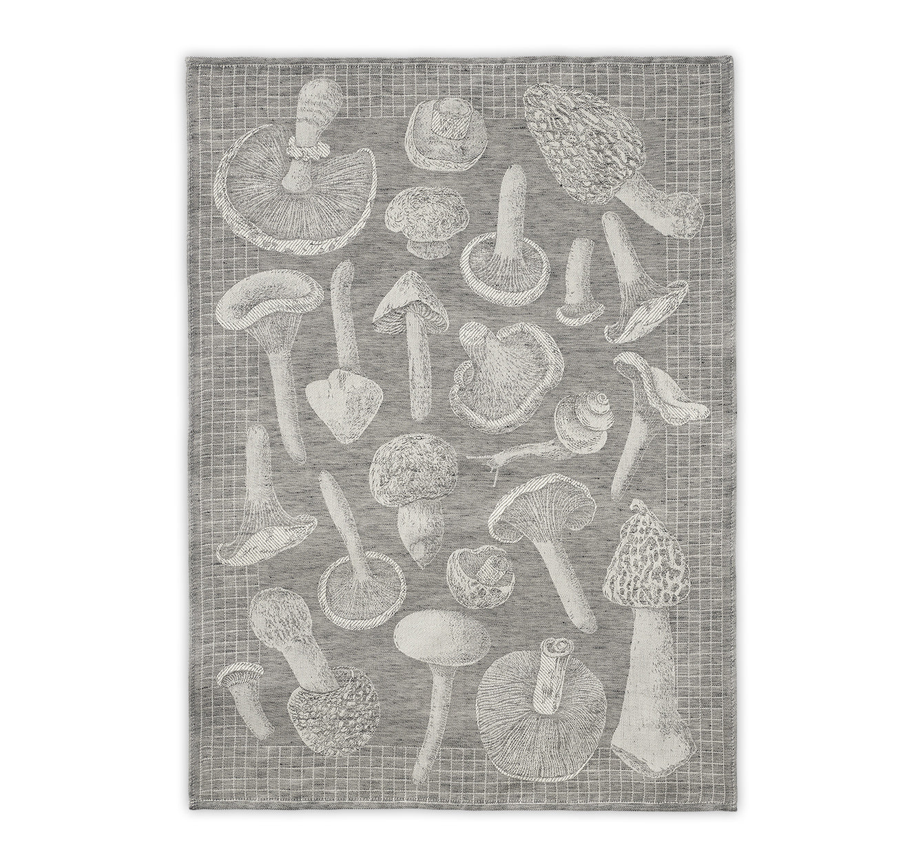 Nicht nur in den heimischen Wäldern tummeln sich ab September die Pilze. Auf dem neuen Halbleinen-Küchentuch von Leitner Leinen stellt sich in Form von Pfifferling, Steinpilz & Co die Vielfalt des Waldes in den Mittelpunkt. Das Dessin aus der Feder des jungen slowenischen Designers David Tavcar begeistert mit naturgetreuen Abbildungen und erinnert mit seiner verflochten wirkenden Umrandung an die Trompe-l’oeil-Malerei.