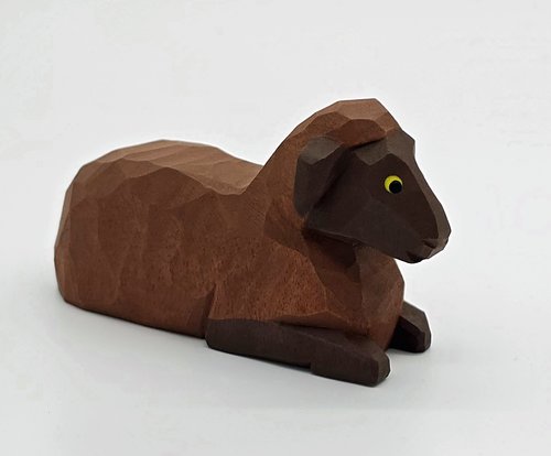 Lotte Sievers-Hahn Krippenfiguren 12cm, Schaf dunkel liegend, Kopf hoch 4cm