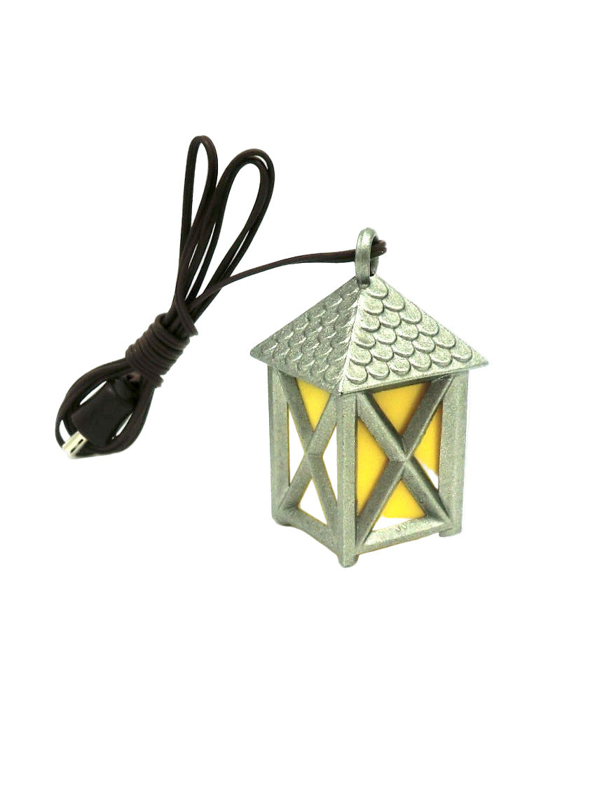 Die Laterne ist ca. 3,5 cm hoch und 2,3 cm breit, mit Anschlußkabel in Braun.