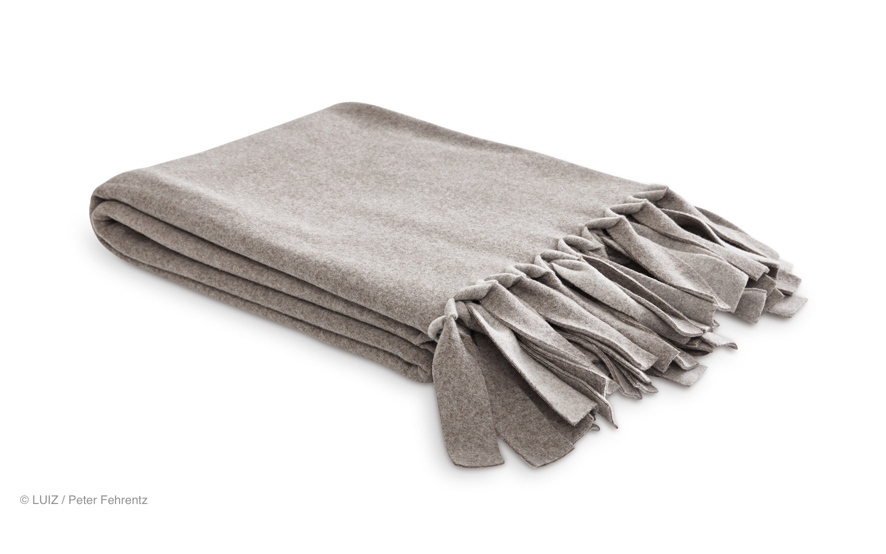 Besonderes Detail: Die groben Fransen an den schmalen Seiten, die aus dem gleichen Material wie das Plaid selbst gefertigt sind, sorgen für ein harmonisches und zugleich modernes Erscheinungsbild.