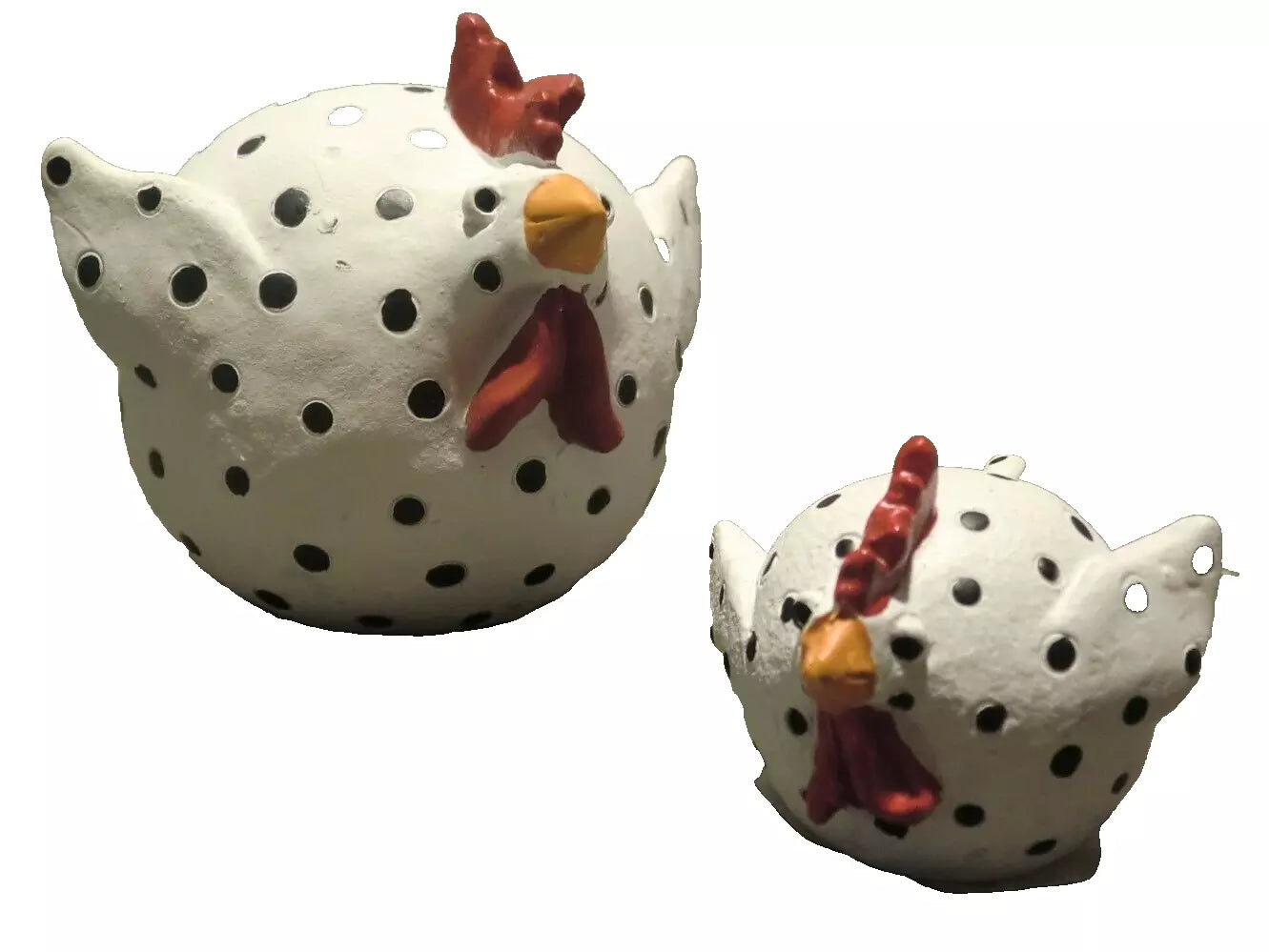 Zwei handbemalte, kleine Hennen im Set von Nääsgränsgarden, Höhe 3,5cm. bzw. 6,5cm. Design Ruth Vetter.