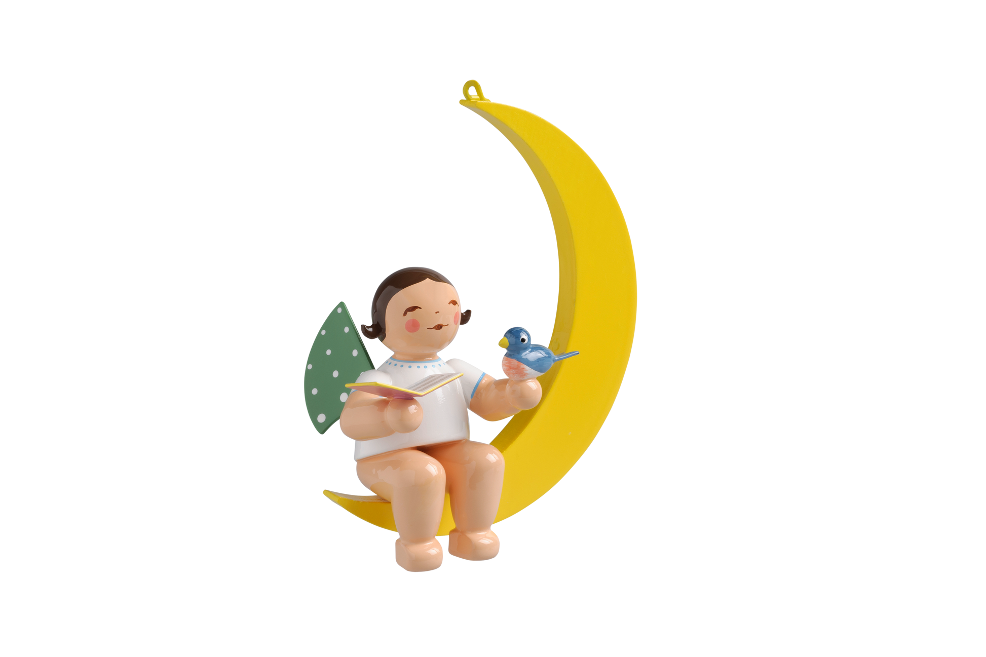Wendt & Kühn Engel mit Liederbuch und Vogel, im Mond