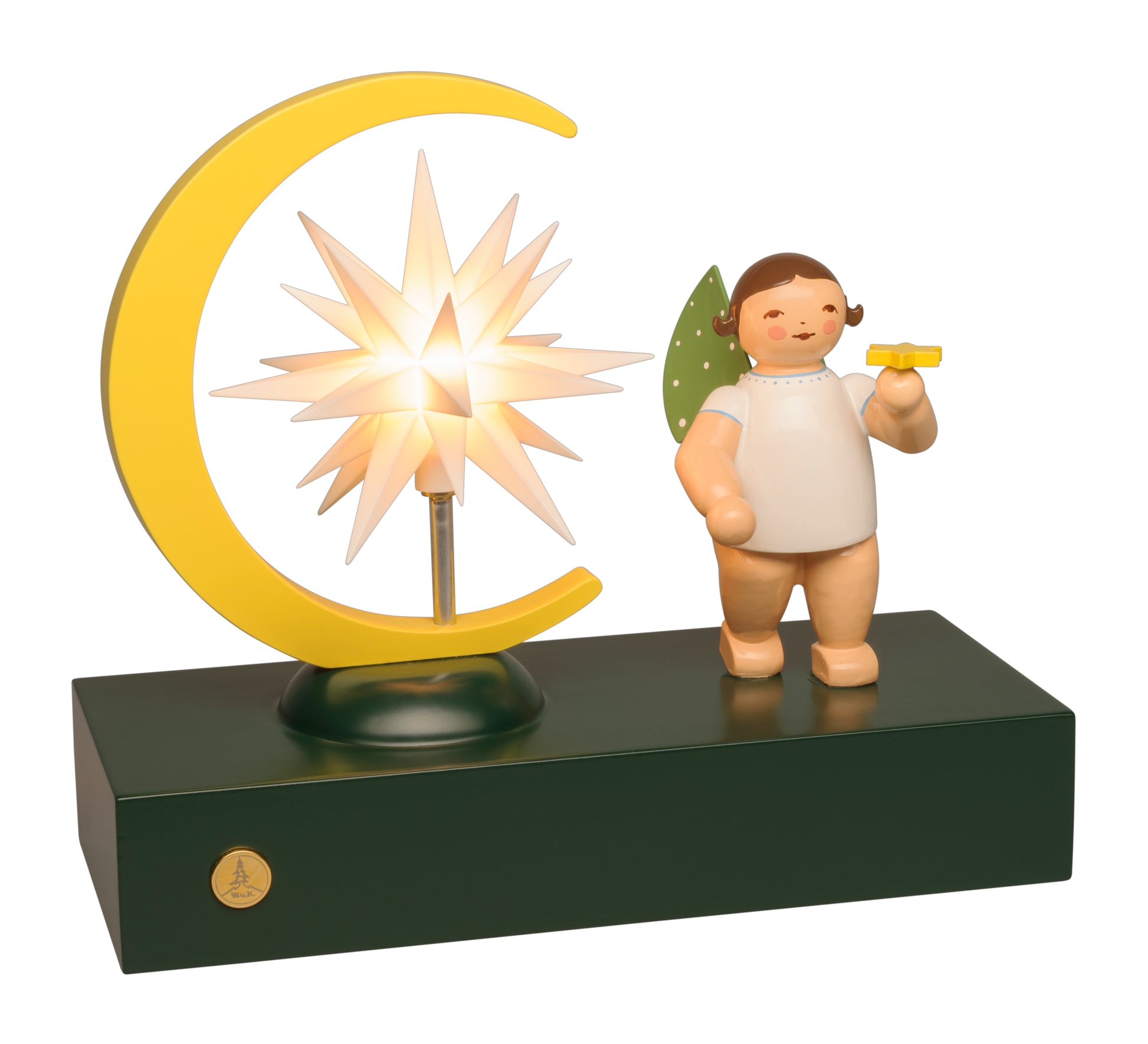 Wendt & Kühn Engel mit Mondsichel und Stern, beleuchtet durch Herrnhuter Stern